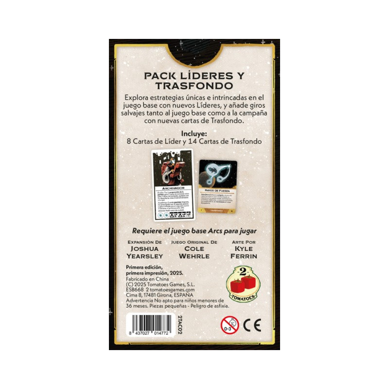 Explora estrategias únicas y complejas en el juego base de Arcs con nuevos líderes, y añade giros salvajes tanto al juego base de Arcs como a la campaña con el trasfondo.