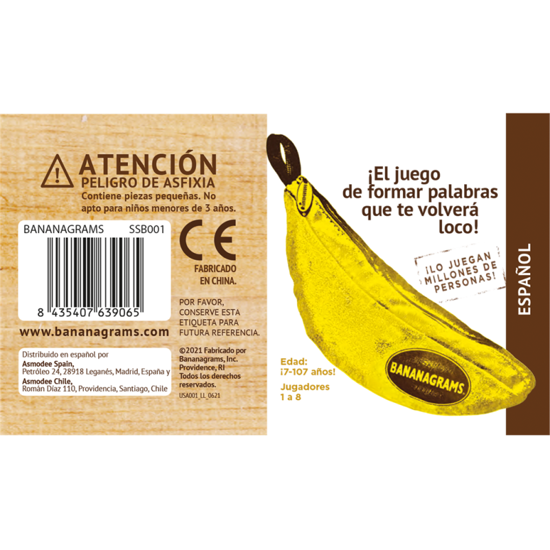 Bananagrams es un juego de palabras rápido y divertido que no requiere lápiz, papel ni tablero: utilizando las fichas de letras de plástico, cada jugador trabaja de forma independiente para crear su propio “crucigrama” más rápido que sus oponentes. ¡Intenta formar la mayor cantidad de palabras para ganar y convertirte en La Gran Banana!