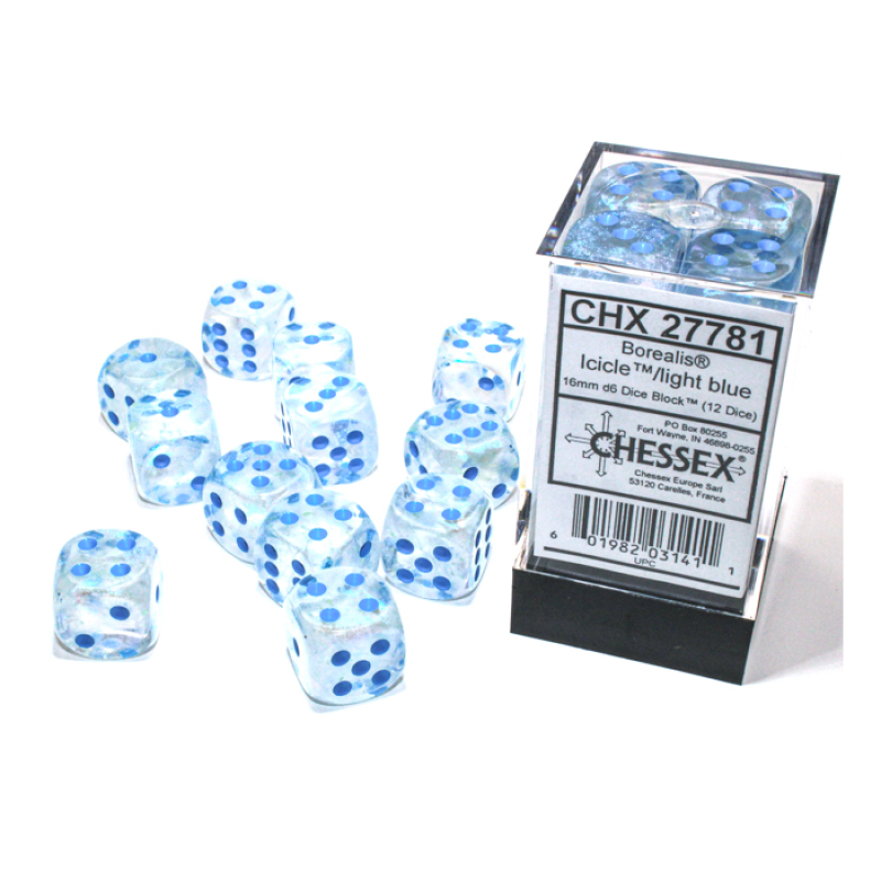 Chessex - 16mm d6 Dice Block (12 dados) - Borealis Icicle/light blue