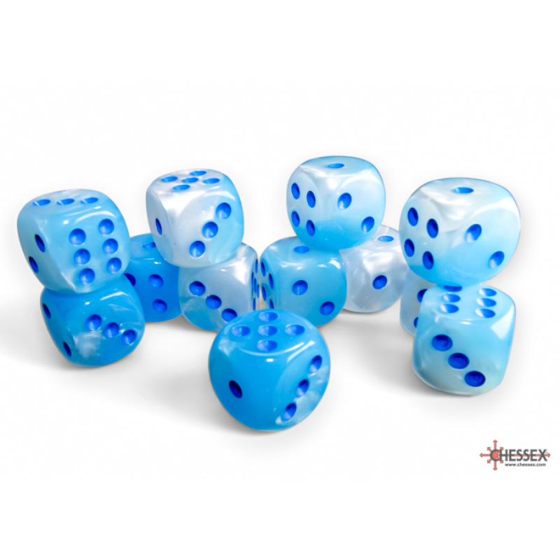 Chessex - 16mm d6 Dice Block (12 dados) - Gemini Pearl Turquoise-White/blue