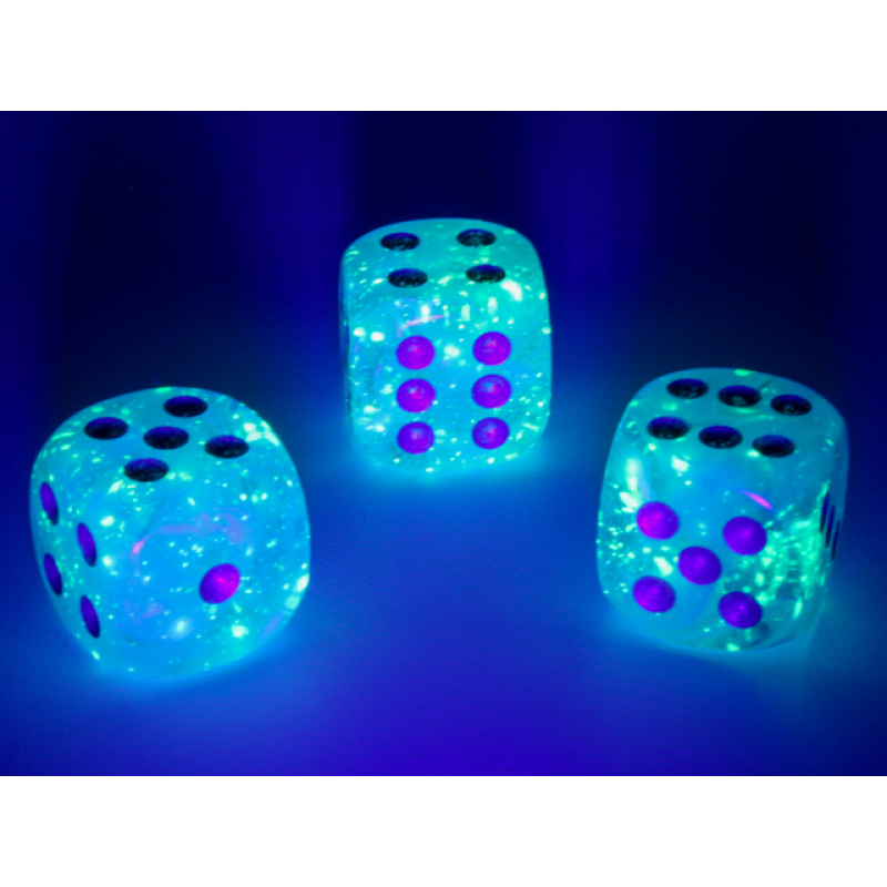 Estos dados tienen efecto Luminary™. Puede parecer una estrella en la oscuridad (con suficiente exposición previa a la luz o bajo una luz negra).
