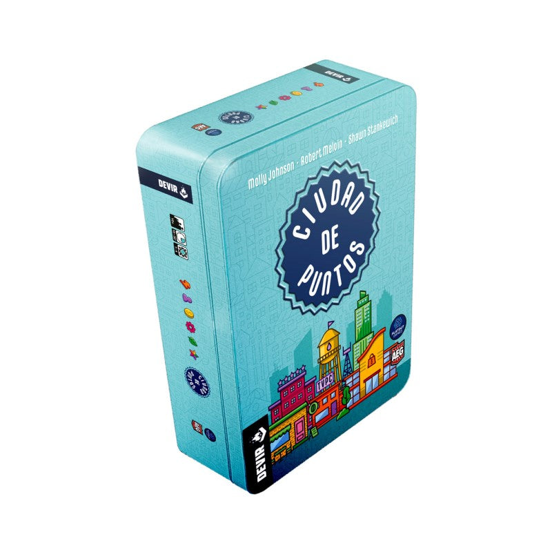 Diseñado y desarrollado por Molly Johnson, Robert Melvin y Shawn Stankewich, este título se puede disfrutar en solitario o en grupos de hasta 4 personas, a partir de 10 años, en partidas de entre 15 y 30 minutos de duración. Ciudad de puntos es un juego de selección de cartas y creación de motor de juego en el que los jugadores consiguen recursos y construyen su ciudad mediante cartas de edificio, compitiendo para conseguir más puntos que los demás. Los edificios construidos ayudan a los jugadores a obtener bonificaciones, puntos y recursos permanentes para los turnos sucesivos. ¡El jugador que construya la ciudad que valga más puntos será el ganador!