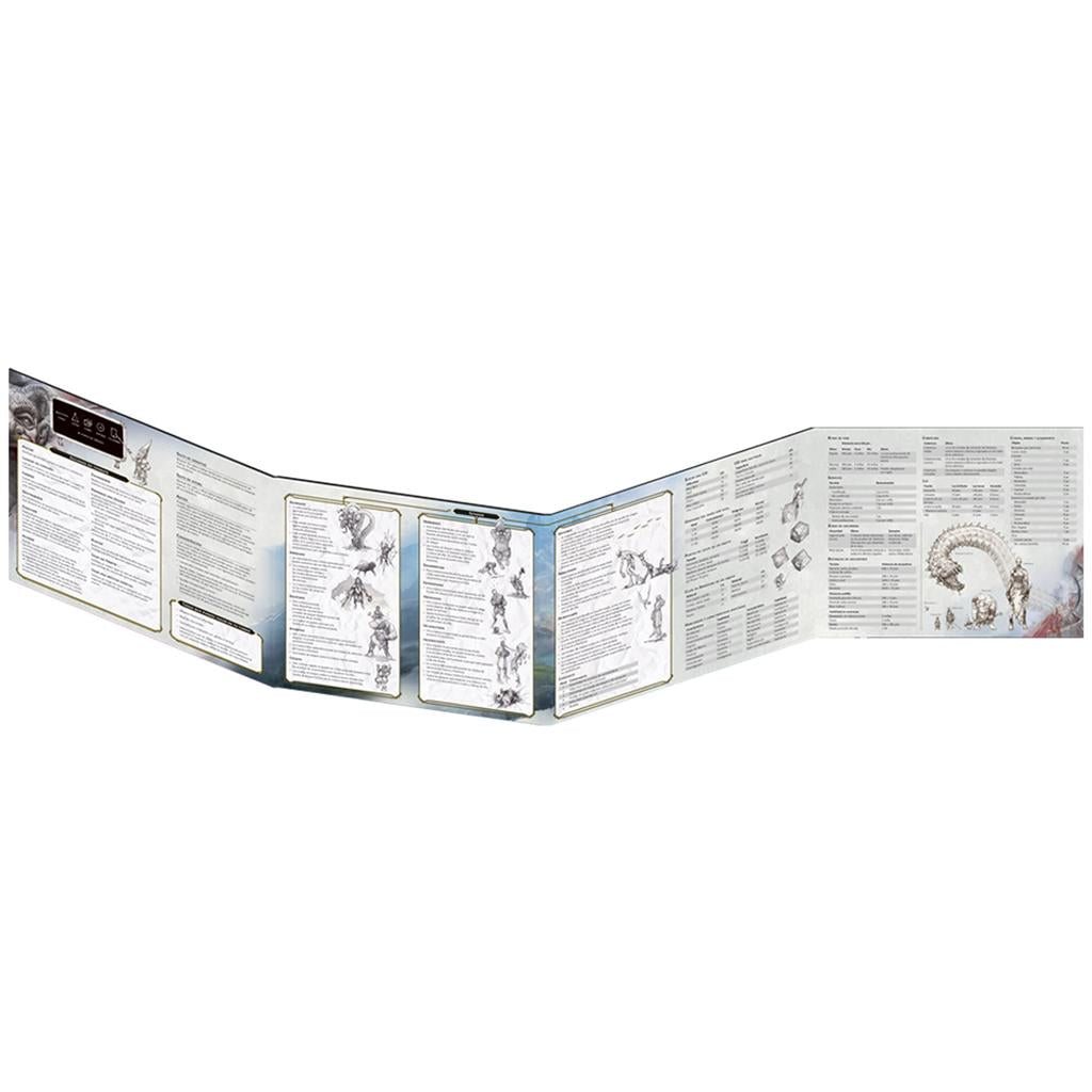 Esta pantalla del Dungeon Master, sumamente resistente y de cuatro cuerpos, está decorada con una panorámica en la que se puede ver a un dragón rojo anciano llevándose entre sus garras a un pobre desdichado. El interior de la pantalla, revisado y actualizado, contiene un resumen de las reglas más solicitadas por los aficionados a D&D®.