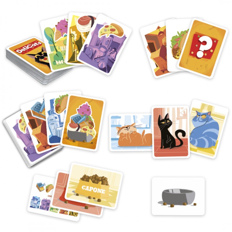DeliCats es un juego cooperativo de deducción y lógica en el que tendrás que investigar a los gatos de tus vecinos y descubrir sus delicados gustos gatunos. Incluye un calendario de misiones, ordenadas de menor a mayor dificultad, que varía la experiencia de juego con pequeños cambios en las reglas y modifica su lógica y su estrategia.