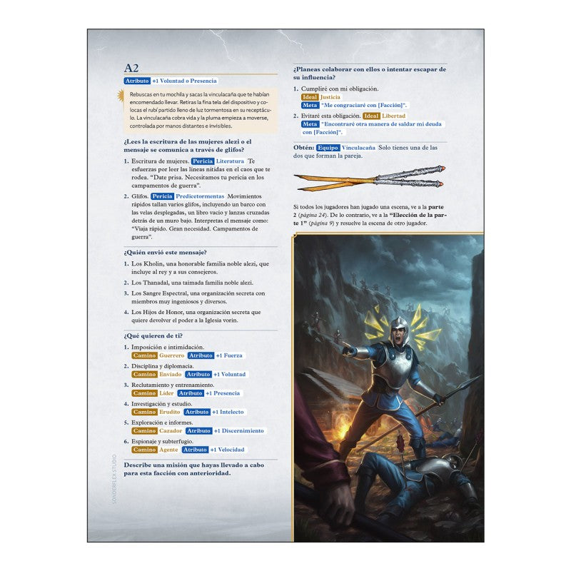 Esta aventura contiene las reglas básicas necesarias para jugar, pero un ejemplar del Manual del Archivo de las Tormentas™ hará que la experiencia sea completa. El primer paso también puede servir como prólogo para la aventura Caminapiedras™.