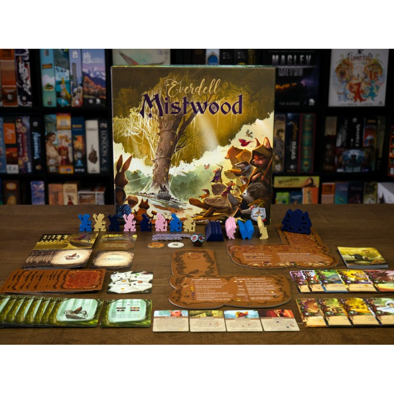 Mistwood proporciona diversos módulos de expansión que puedes incluir si juegas a Everdell y sus otras expansiones. Además, Mistwood presenta un nuevo y exigente modo de juego para 1 o 2 jugadores: La Guarida de Tejenoche.