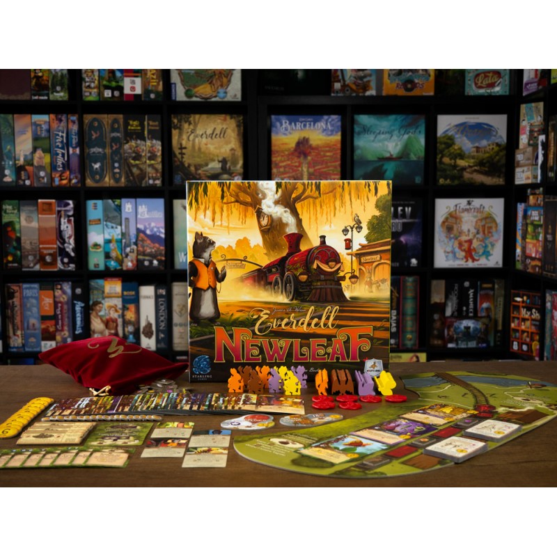 ¡Cada día llegan más criaturas y nuevas ideas al apeadero de Newleaf! Siendo la primera ciudad oficial de Everdell, Newleaf se ha convertido en un destino floreciente con numerosas y emocionantes oportunidades que descubrir y explorar. ¡Atrae visitantes entusiastas a tu ciudad, haz tus reservas, viaja lejos con tus billetes y construye la ciudad más próspera que Everdell haya visto jamás!