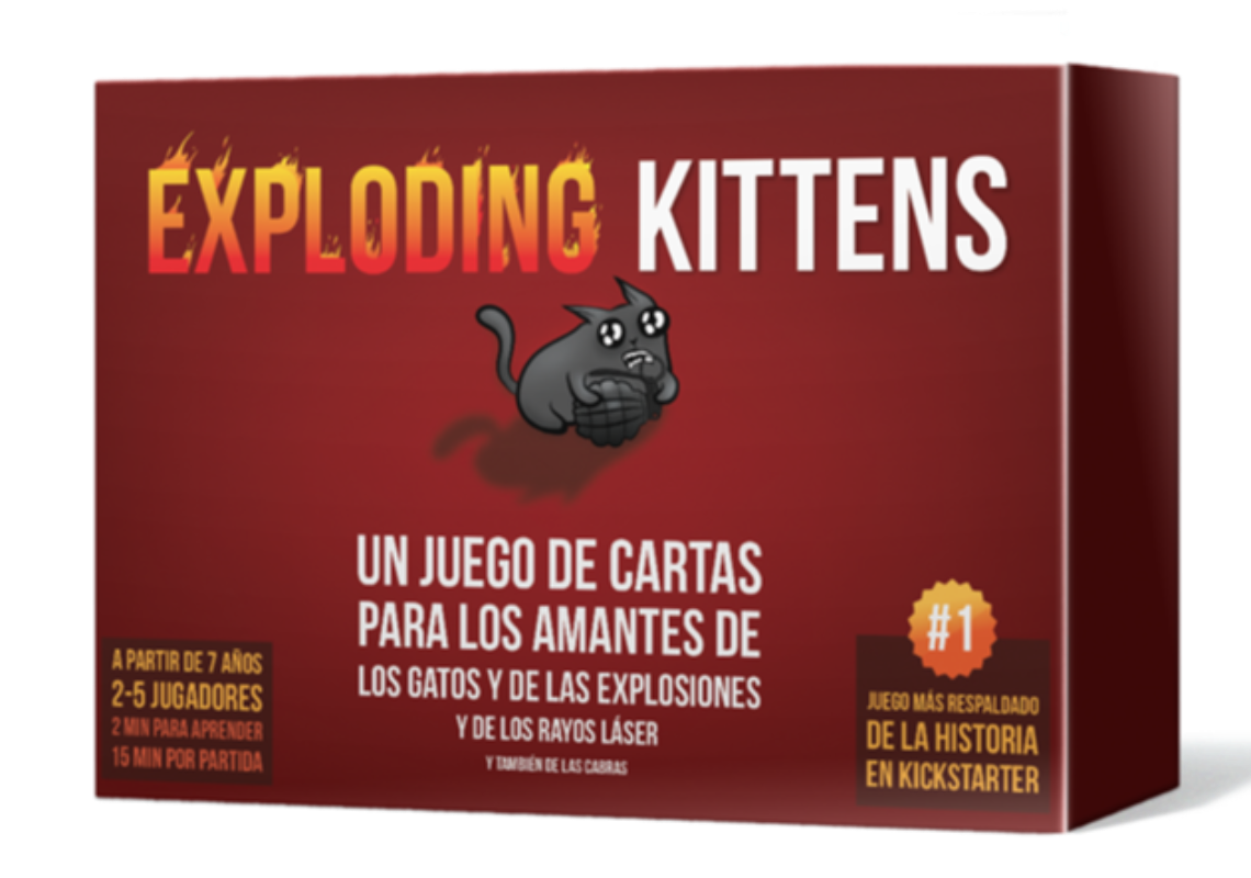 Exploding Kittens es un juego rápido y divertido en el que tienes que asegurar tu supervivencia ante los temibles ¡gatos explosivos! Un juego de cartas en el que hasta cinco jugadores hacen todo lo posible por fastidiar a los rivales hasta conseguir que caigan eliminados, aguantando tanto tiempo como sea posible con la esperanza de que sean los rivales los que finalmente se encuentren con un gato explosivo.