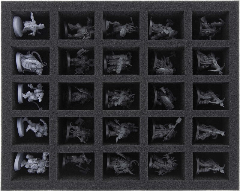 Las tres bandejas de espuma Full-Size son ideales para miniaturas con bases más grandes de hasta 40 mm. Los modelos grandes con bases de 32 mm encajan muy bien.