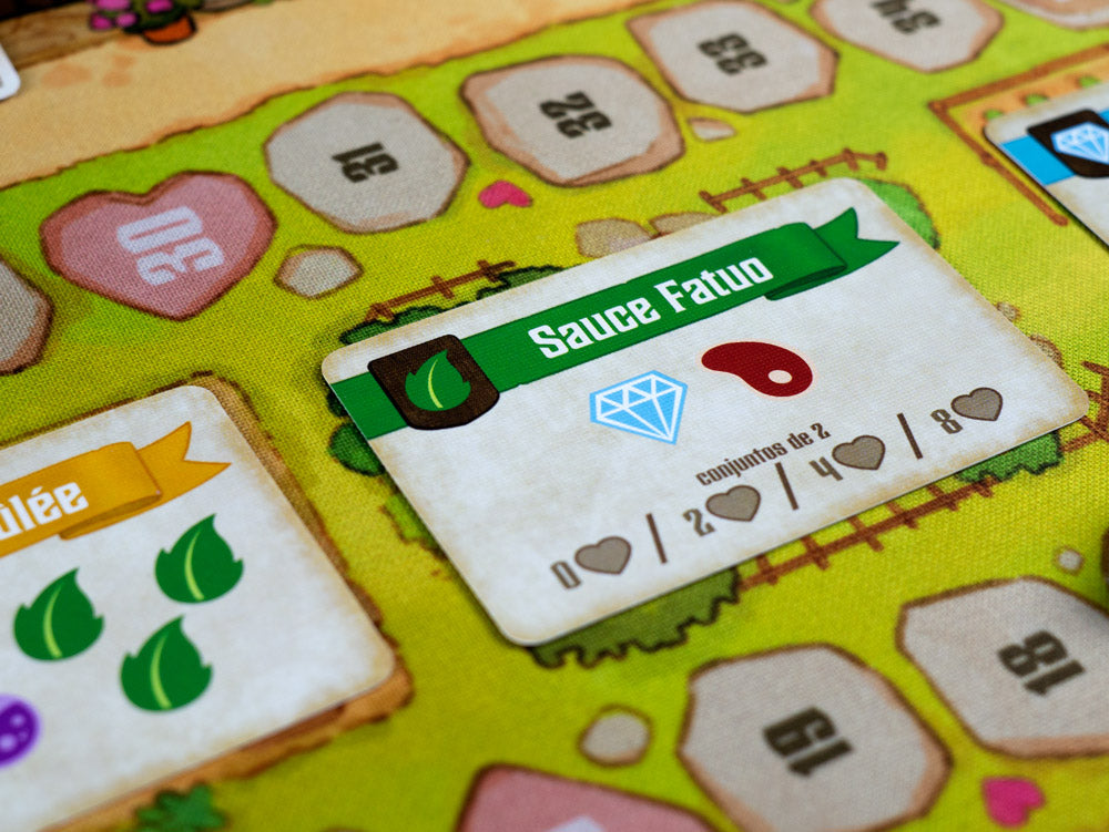 210 fichas de Producto (35 de cada uno: Pan, Carne, Pociones, Plantas, Hierro y Cristal