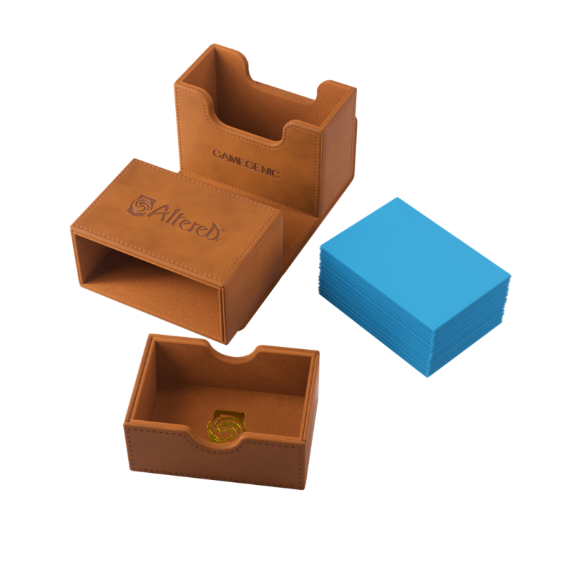 El modelo Deck Wallet es una caja para mazos oficial diseñada específicamente para cubrir las necesidades de los fans de Altered®. Podrás identificar tu mazo de un vistazo a través del bolsillo con ranura para la carta de héroe sin tener que abrir la caja. Esta caja tiene el tamaño perfecto para guardar un mazo completo de más de 50 cartas en doble funda o incluso 2 mazos completos cuando se quita el cajón.