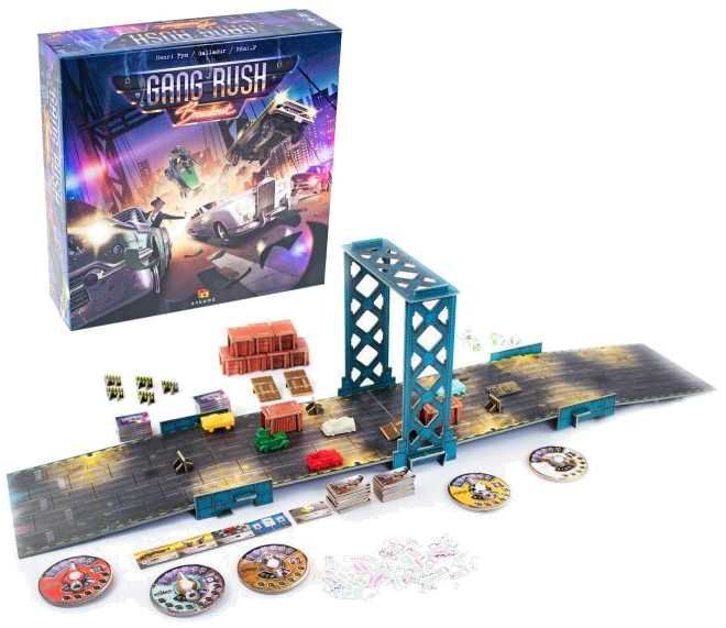 En el juego de mesa Gang Rush, los jugadores se pondrán en la piel de matones de la mafia, que se verán inmersos en una carrera para llegar hasta el cuartel general. Al volante de vehículos personalizados, tendrán que maniobrar, disparar y pisar el acelerador para traer el mayor botín y convertirse en la mano derecha del jefe. Cada jugador podrá, por supuesto, advertir, amenazar e influenciar al resto de jugadores en todos sus actos. En este juego, ¡todo está permitido!