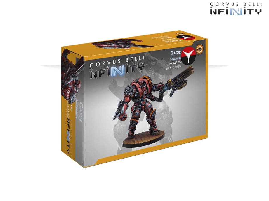 Esta caja incluye una miniatura de termoplástico inyectado del Gator Squadron. Un apoyo pesado para las fuerzas Nómadas. Su Dispensador de Minas hará que el enemigo se piense dos veces antes de avanzar. Y si tiene el valor de hacerlo, entonces se encontrará con los Chain Rifles del Gator.