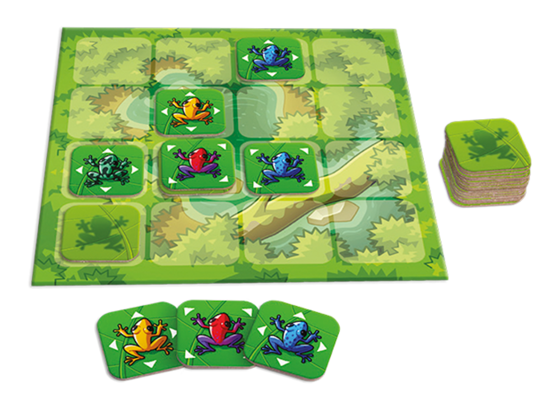 Coloca las ranas en el tablero de juego estratégicamente para darle la vuelta a las fichas que estén adyacentes, ocultando algunas ranas y revelando otras. Al final de la partida, el jugador con más ranas bocarriba será el ganador.