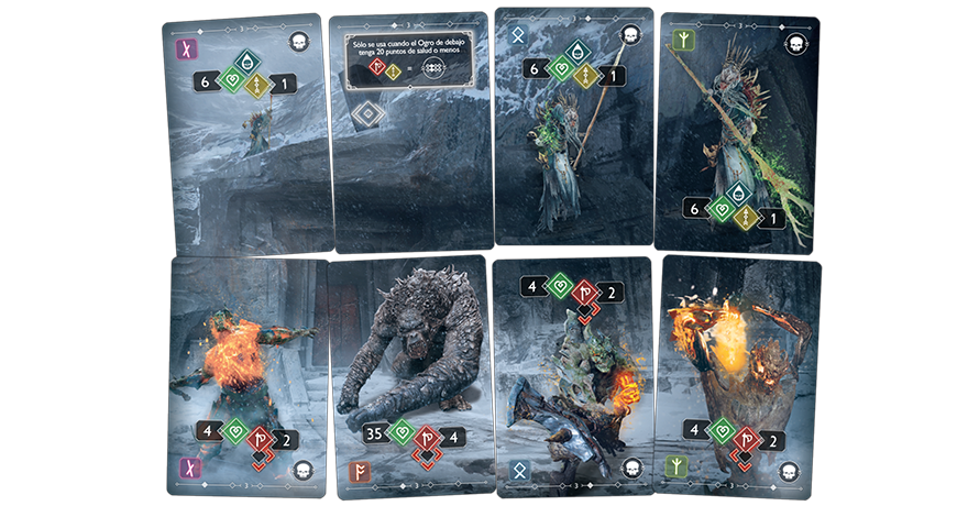 God of War: El juego de cartas es un juego cooperativo para 1-4 jugadores en el que controlarán a los personajes del videojuego mientras se mueven por los Escenarios, formados por varias cartas, cada una con un desafío que deberán superar. Utilizad las cartas de Acción para reforzar los mazos con mejoras que desaten poderes contra los enemigos. Ganad y sobreviviréis al Ragnarök. Perded y seréis testigos del camino que lleva a la destrucción.