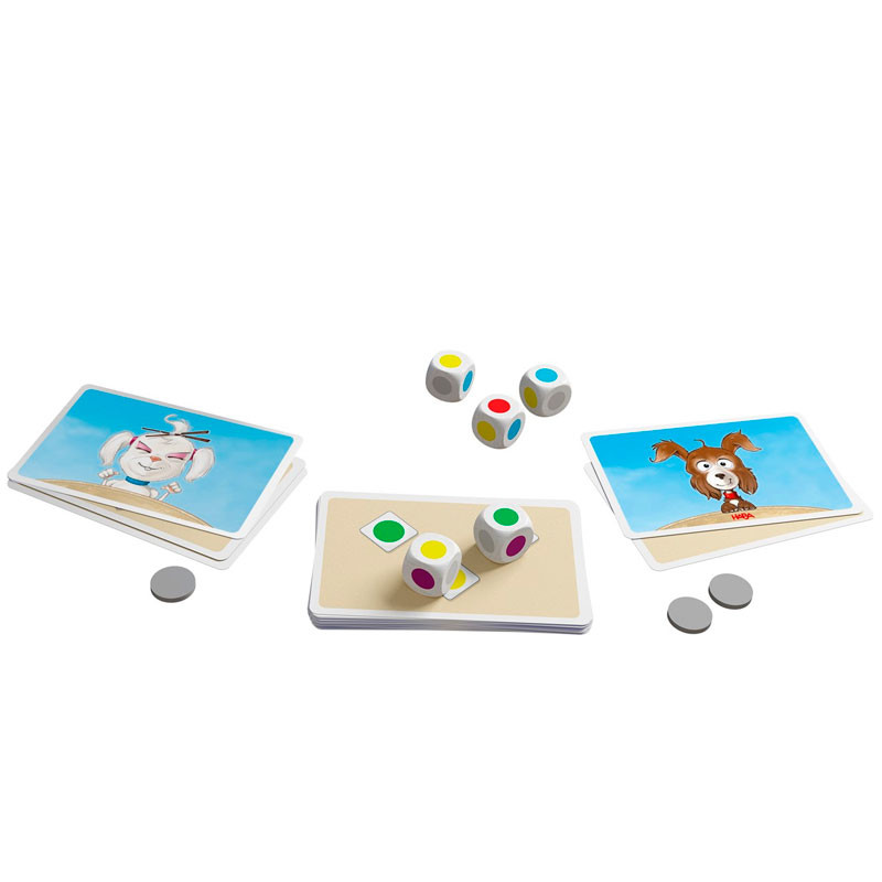 Por turnos se lanzan los dados de colores con el objetivo de completar las golosinas caninas de la primera carta de la pila. Quien consiga completarla, se queda con esa carta. Al final de la partida gana quien haya logrado más cartas.