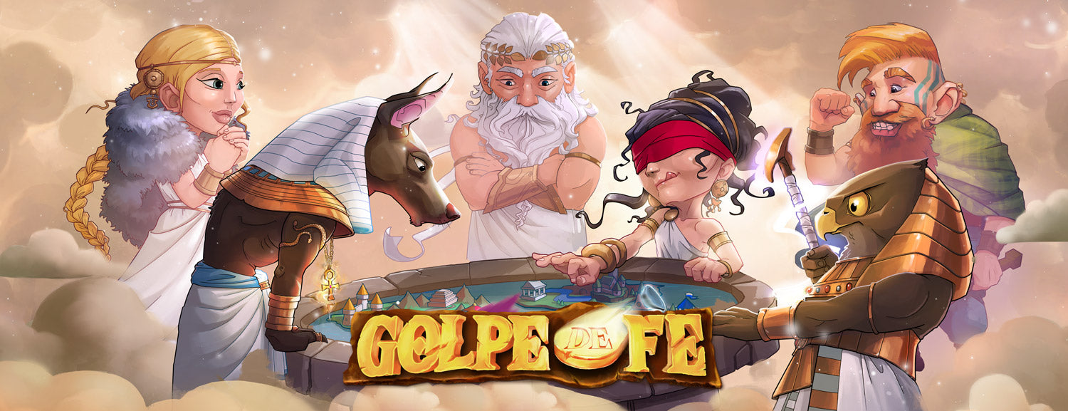 Golpe de Fe es un juego de control de áreas y de habilidad con unas reglas fáciles de aprender y unas mecánicas muy divertidas. Además de poder empezar a jugar a los pocos minutos de abrir la caja, Golpe de Fe tiene una gran rejugabilidad. Distintos dioses, muchísimas leyes emocionantes y tú: el divino golpeador.