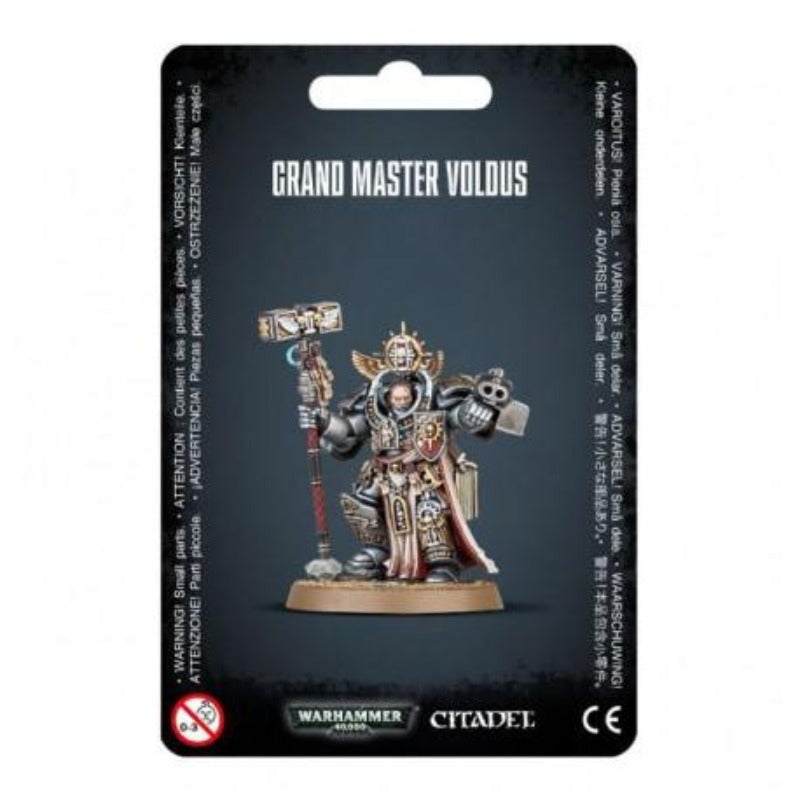 Este kit de plástico multicomponente contiene las piezas necesarias para montar al Grand Master Voldus, Guardián del Librarius. Se trata de una miniatura absolutamente repleta de detalle, como corresponde a un Grand Master de su poder y reputación. Su armadura Terminator cuenta con numerosas inscripciones sagradas, así como varios cráneos, cadenas y tomos de magia. Su legendario martillo, tan alto como el propio Voldus, está repleto de sellos de pureza y cableado que refleja su propósito como conducto para sus energías psíquicas, y en su mano izquierda blande un bólter tormenta montado en la muñeca.