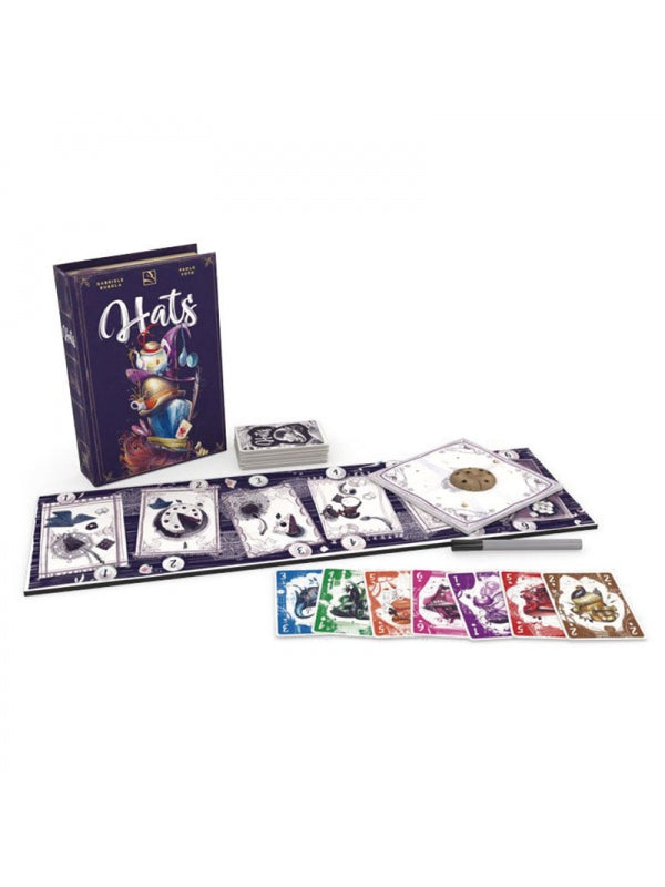 Hats es un precioso y colorido juego de cartas ambientado en el universo creado por Lewis Carroll. Es un título de reglas sencillas creado por Gabriele Bubola y maravillosamente ilustrado por Paolo Voto.