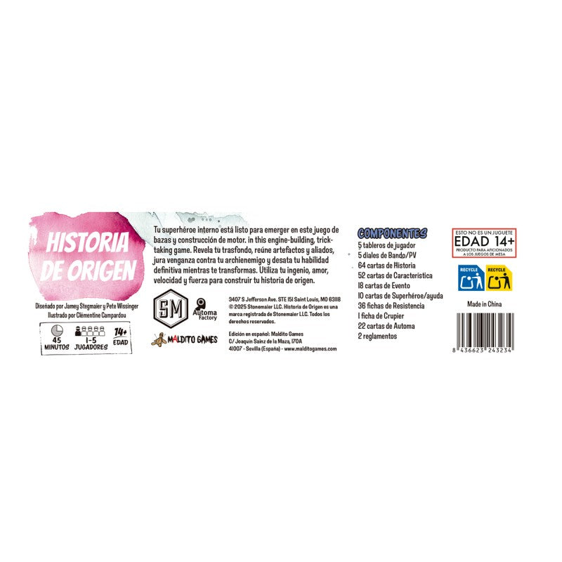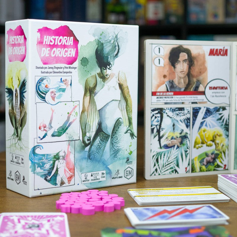 Historia de origen es un juego de bazas y construcción de motor que se juega a lo largo de 5 rondas. Cada ronda representa un capítulo de tu desarrollo y añadirás una nueva carta a tu tablero en cada una. Carga tus cartas y usa sus habilidades para obtener más puntos que tus oponentes.