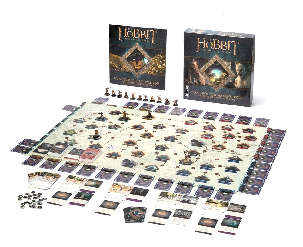 El Hobbit™: A la caza de la Arkenstone: Un juego de aventuras de la Tierra Media es un juego de mesa cooperativo, ajustado y autocontenido. Thorin Oakensheld y compañía buscan devolver la Arkenstone a la Sala del Trono mientras Azog y sus seguidores les dan caza en este juego tenso y lleno de acción para dos o más jugadores. La caja incluye todo lo necesario para jugar, incluidas 15 miniaturas de plástico que representan a Thorin y sus aliados.