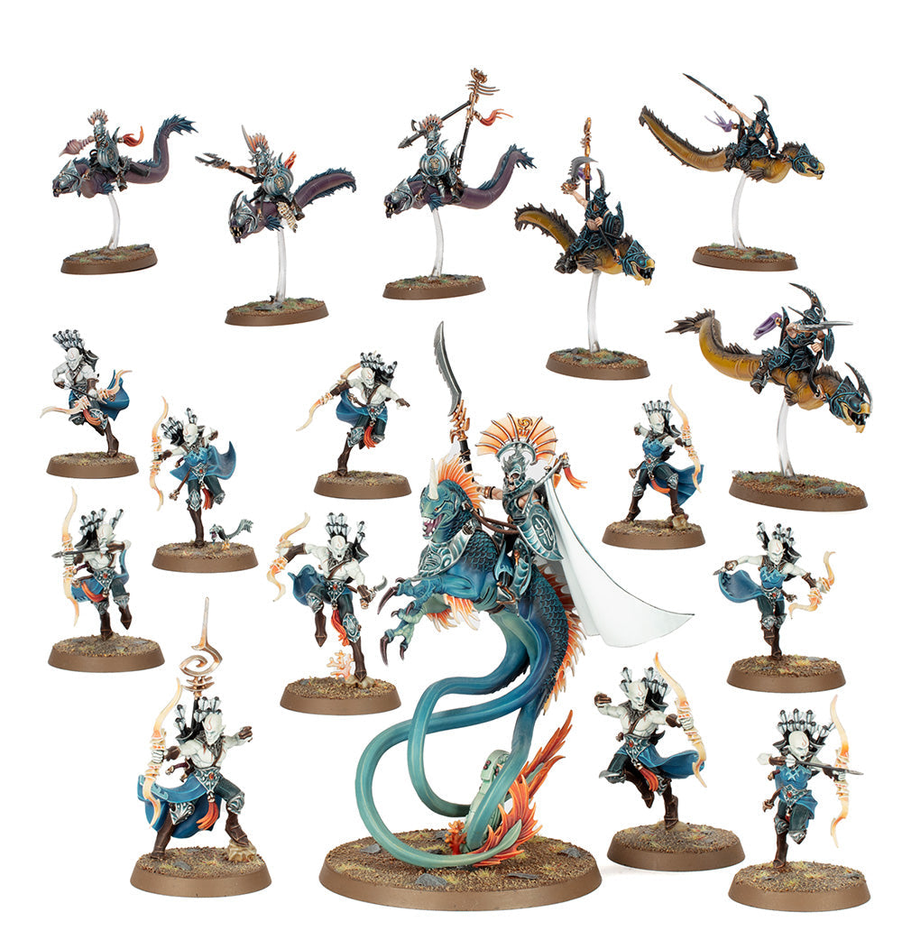 ¡Lucha en punta de lanza con la velocidad brutal de los Idoneth Deepkin! El Akhelian Tide Guard incluye todo lo necesario para una fuerza Spearhead completa y optimizada: