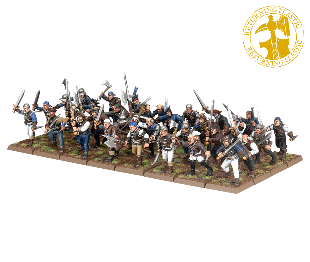 Este kit de miniaturas de plástico incluye 32 milicianos multicomponente, perfectos para cubrir tu artillería o para montar una banda de Mordheim flipante.