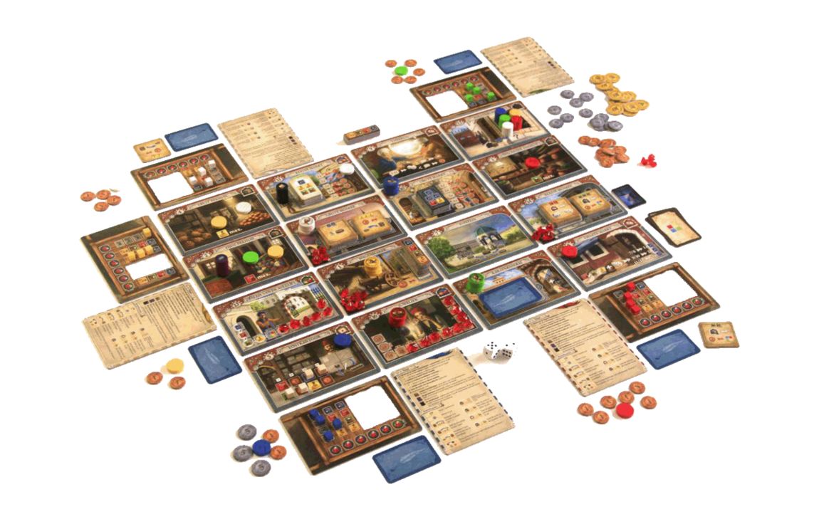 Más en detalle, durante tu turno mueves a tu mercader y a su séquito de ayudantes uno o dos espacios a través del bazar, y o bien dejas a un ayudante en tu nueva ubicación o recoges uno que hubieras dejado con anterioridad, y finalmente harás una acción. Si te encuentras con otros mercaderes o ciertos individuos en la localización podrás hacer una pequeña acción extra. Las acciones posibles incluyen: