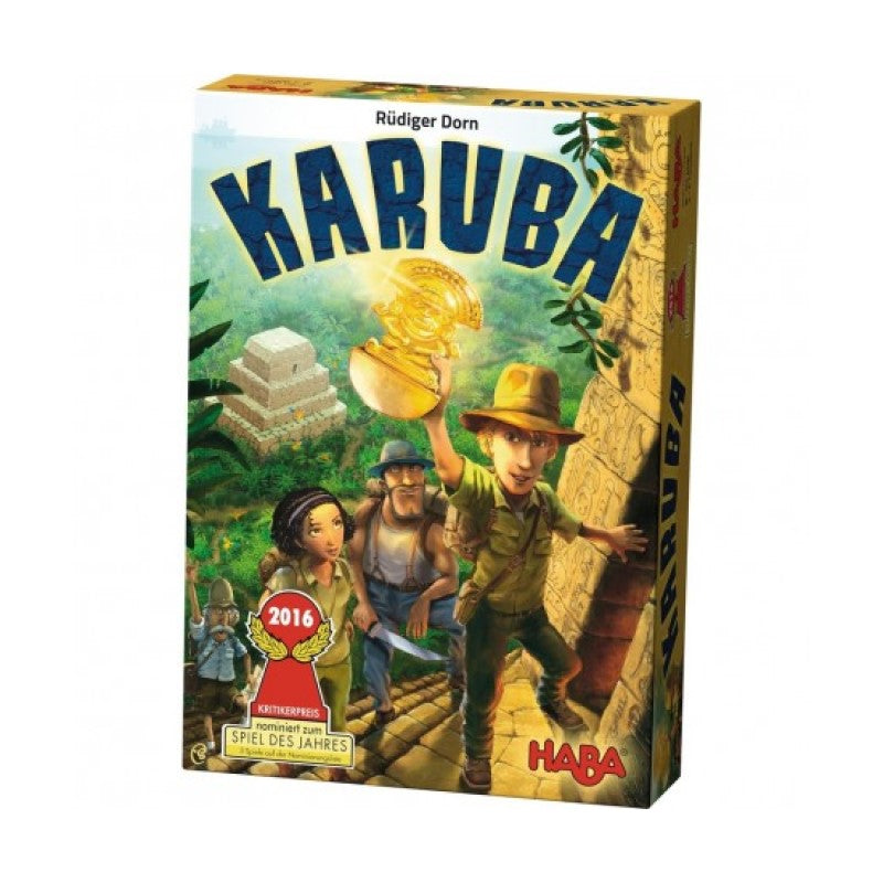 ¡Por fin! Tras un largo viaje en bote, los cazadores de tesoros han alcanzado la isla Karuba y pueden hacerse a la búsqueda de los tesoros escondidos. ¿Quién guiará con más inteligencia a su equipo de aventureros a través de la jungla, prestará atención al resto de jugadores y estará atento al oro y los cristales del camino? Lo más importante de todo es ¡emprender la marcha a tiempo!, pues los primeros se aseguran los preciados tesoros de los templos.