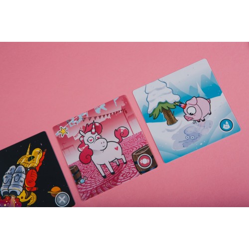 Al comienzo de cada ronda se roban al azar 4 cartas de Unicornio y se colocan sobre la mesa. ¡Se abre la veda!