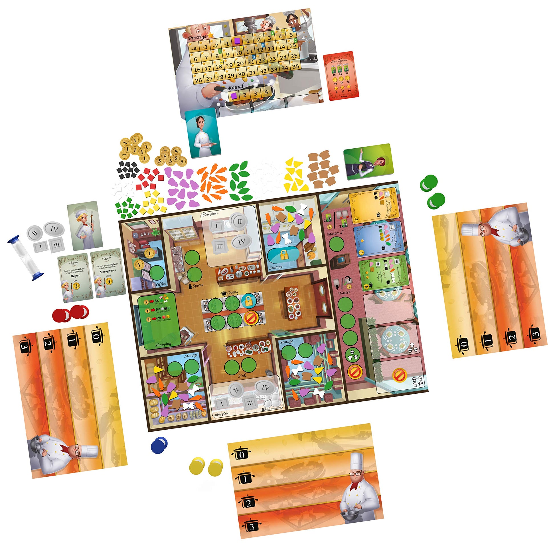 Kitchen Rush es un innovador juego cooperativo en tiempo real que simula la emoción de un entorno de cocina en la cual los jugadores están sometidos a la presión del tiempo. Lo hace a través de la colocación del trabajadores representados por relojes de arena. Estos relojes de arena se utilizan para tomar pedidos de los clientes, preparar sus platos, servirlos a tiempo, comprar los ingredientes, limpiar los platos para garantizar que se puede atender a todos los clientes etc. El objetivo: asegurarse de que se genera suficiente dinero cada ronda para cubrir los salarios, gastos, mejoras y, con suerte, dejar un beneficio. Cualquier trabajador colocado en un espacio de acción no puede ser usado en otro lugar antes de que la arena dentro del reloj se agote, haciendo que cada decisión sea importante ya que el tiempo es limitado.