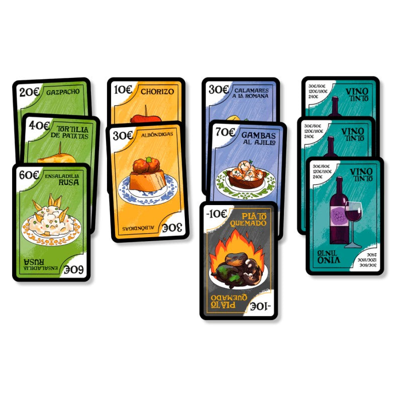 Cada bar que visitáis se representa con una ronda, y cada ronda consta de un número indeterminado de turnos (pedidos que hacéis a la cocina). En su turno, el participante en turno juega 1 carta de su mano. La partida se acaba cuando a alguien se le acaban los ahorros. Inmediatamente, gana quien tenga más ahorros. En caso de empate, gana de entre los empatados quien lleve más dinero encima.