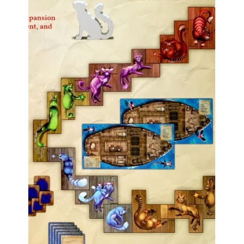 En La Isla de los Gatos te convertirás en un ciudadano de Punta de Tempestad y te embarcarás en una misión de rescate para salvar tantos Gatos como puedas antes de la llegada de Vesh. Debes explorar la Isla, rescatar Gatos, recoger antiguos Tesoros y encontrar la manera de colocar todo en tu barco antes de volver sano y salvo a Punta de Tempestad. Los Gatos y los Tesoros se representan con losetas de diferentes formas que deberás colocar cuidadosamente en tu barco. Trata de mantener juntas a las familias de Gatos, completa cartas de Manuscrito y deja suficiente espacio para poder seguir colocando cosas en tu barco. Pero cuidado: ¡volver a Punta de Tempestad con el barco medio vacío no estará muy bien visto!