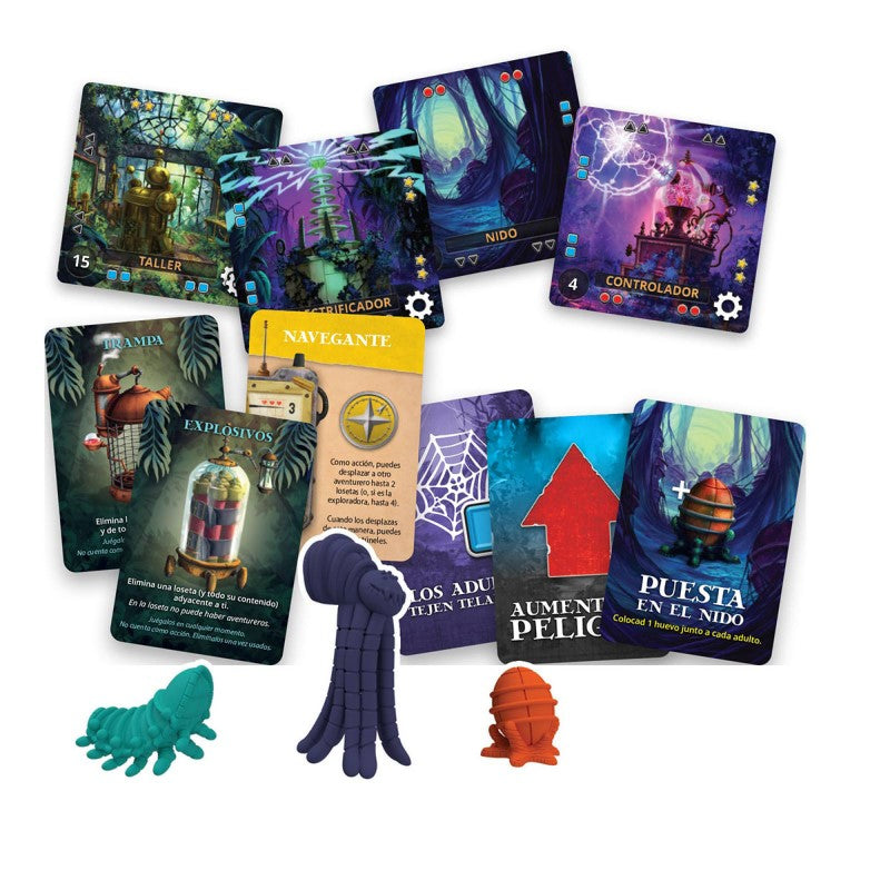 Diseñado por Matt Leacock (el célebre autor de la saga Pandemic), La selva prohibida permite partidas para parejas y grupos de hasta 5 jugadores, a partir de 10 años, de unos 45 minutos de duración. En este juego cooperativo, los jugadores deben trabajar en equipo para activar un portal y escapar antes que se derrumbe el terreno o que les atrapen los aliens.
