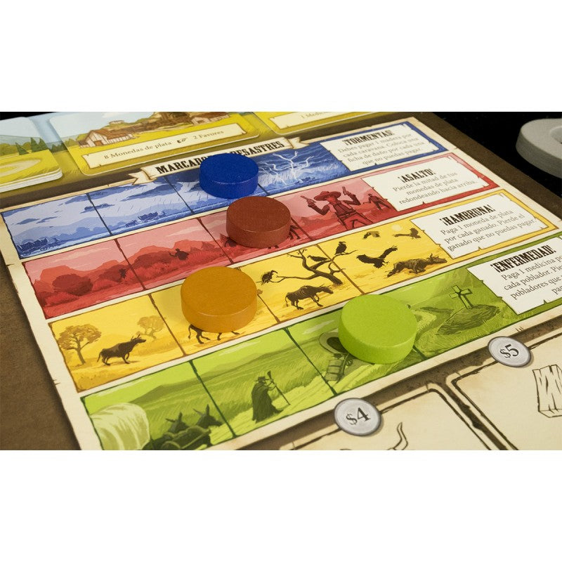 - Recursos y fichas de ganado, medicinas, madera, monedas de plata, favores y fichas de daño