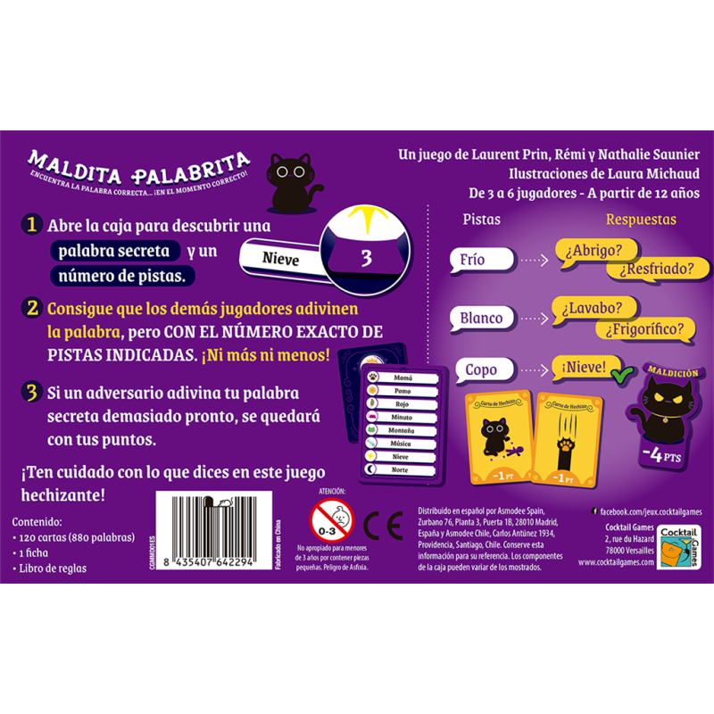 120 cartas (880 palabras) • 1 ficha • Libro de reglas