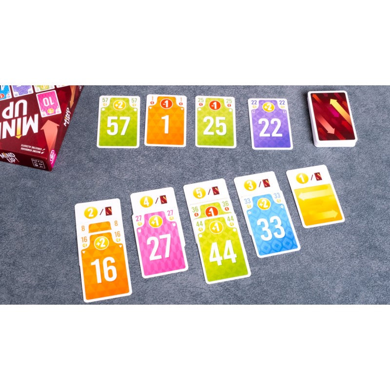 El turno de Mind Up es sencillo, tendrás que revelar una carta de tu mano y situarla en orden ascendente debajo de la fila central, para luego tomar la carta que esté en la misma posición y añádela a tu colección.