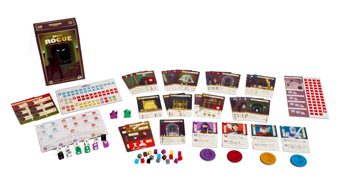 Mini Rogue es un juego solitario (con modo para 2 personas) que traslada la experiencia de los videojuegos roguelike a la mesa. Nuestro objetivo será avanzar por distintos niveles de una mazmorra, cada uno generado aleatoriamente a partir de un conjunto de posibles habitaciones, hasta llegar al final y derrotar al jefe de la mazmorra.