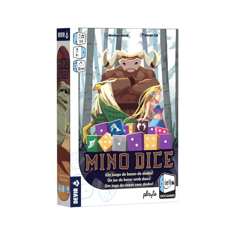 El minotauro vive en el centro de su laberinto… ¿A qué dedica el tiempo mientras espera a su presa? ¡Se pasa el día jugando a los dados! ¿Te atreves a unirte a la partida? Mino Dice es un juego de bazas a base de dados. Anticipa cuantas bazas serás capaz de ganar al iniciar la ronda. Si calculas bien, ¡te convertirás en el campeón del laberinto!