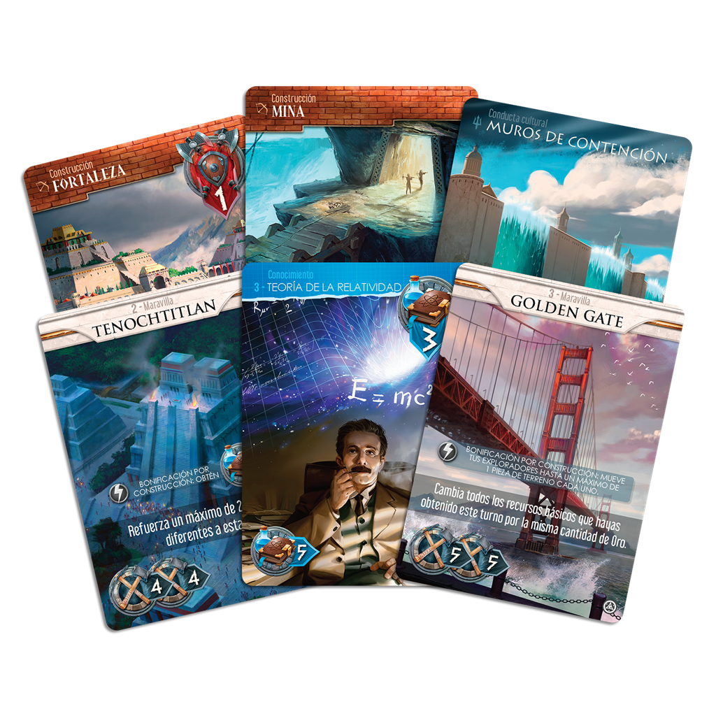 Esta expansión también incluye nuevas piezas de Terreno (Desiertos, Selvas, Islas y Pirámides aztecas), ¡suficiente para jugar partidas de hasta cinco civilizaciones!