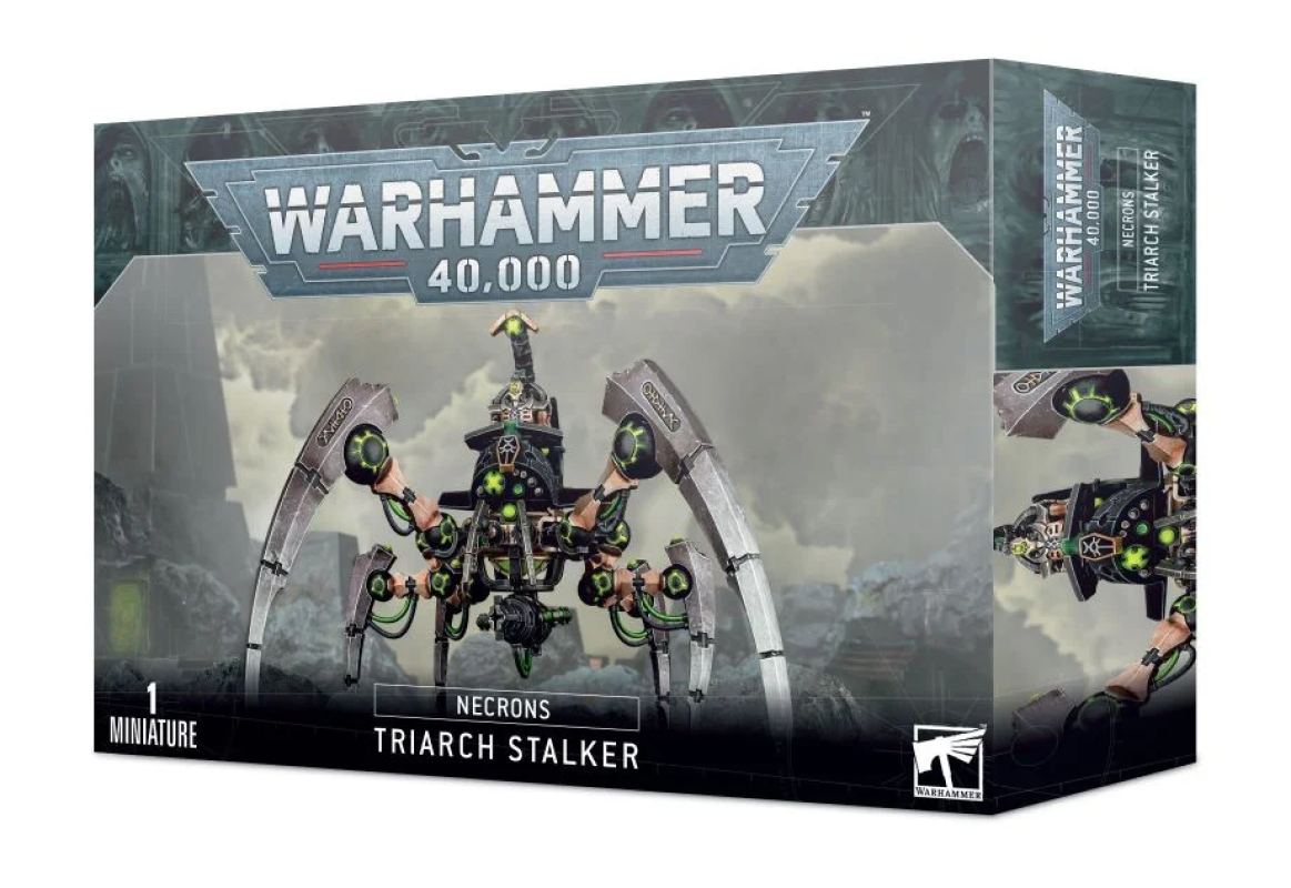 Como una enorme araña mecánica, un Acechante de la Triarca se cierne sobre el campo de batalla con sus patas cercenando extremidades y sus devastadores sistemas de armas controlados por un Pretoriano de la Triarca de alto rango. Cuando esta bestia mecánica avanza, lo hace con una velocidad y aplomo que desdicen su brusco modo de andar. De hecho, es capaz de cubrir todo tipo de terreno con una habilidad y precisión solo comparable a la de los Bípodes de otras razas menos avanzadas. Aunque el Acechante de la Triarca puede equiparse con una amplia variedad de armas antiinfantería y antiblindaje, los Necrones suelen emplearlo como cazatanques adelantado al grueso del ejército. Puede maniobrar más fácilmente que los vehículos enemigos más pesados y voluminosos y destaca especialmente a la hora de desatar toda su potencia de fuego contra los flancos y la retaguardia de dichos vehículos.