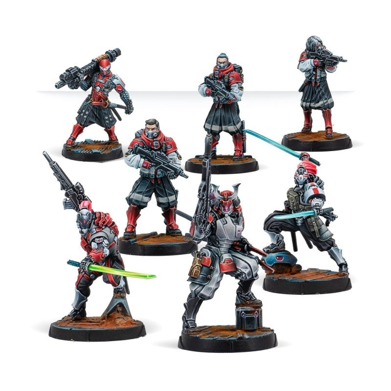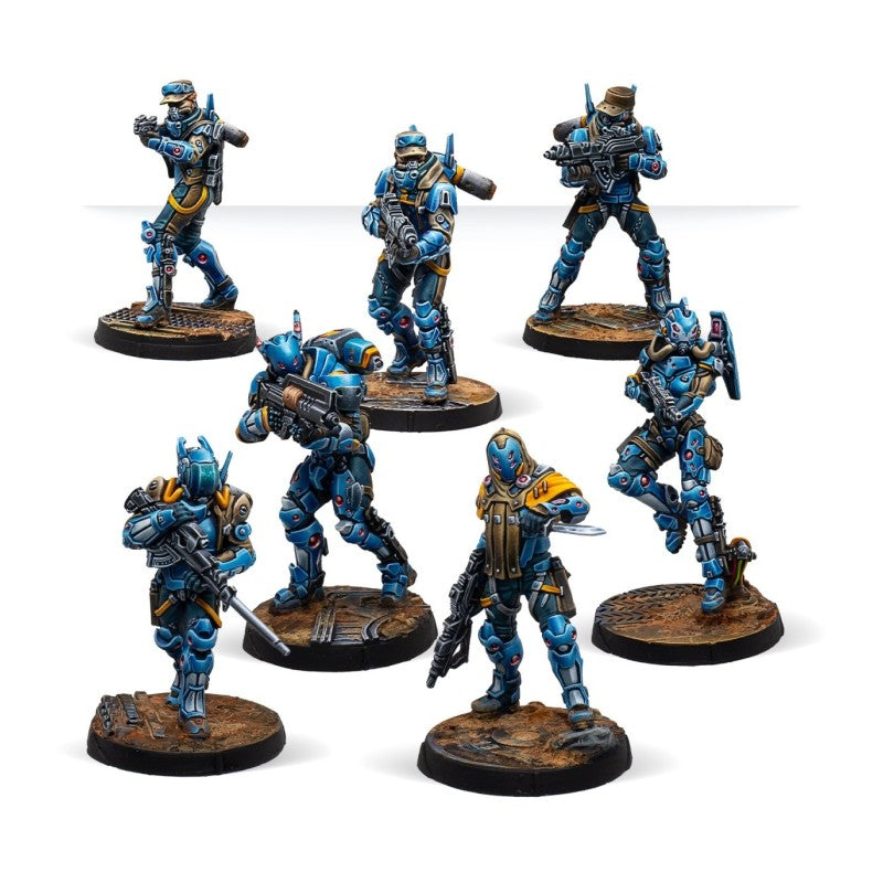 Operation Sandtrap contiene dos sets de miniaturas completamente nuevas de dos facciones sectoriales diferentes: La Fuerza Colonial Kestrel de PanOceanía y Shindenbutai, de JSA. Un total de 14 miniaturas de metal de gran calidad y detalle.