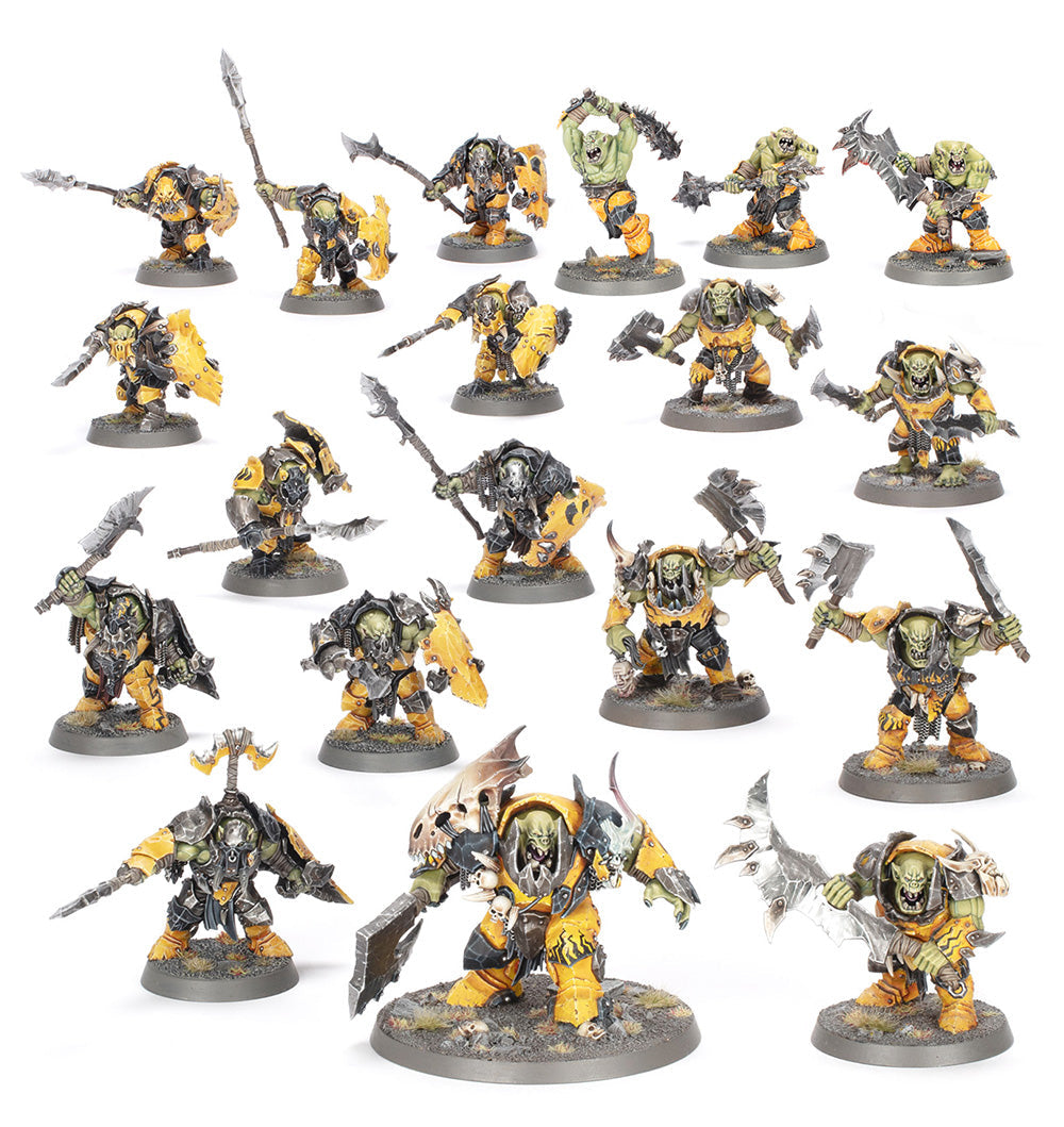 Los Ironjawz están listos para irrumpir en Punta de Lanza al mando de un imponente Megaboss. Con su duradera armadura de hierro y sus armas sencillas pero eficaces, los Ironawz Bigmob barren a sus enemigos con un ímpetu imparable. Acompañan al Megaboss en su búsqueda de krump tres Brute Ragerz, cinco Brutes y 10 Ardboyz.