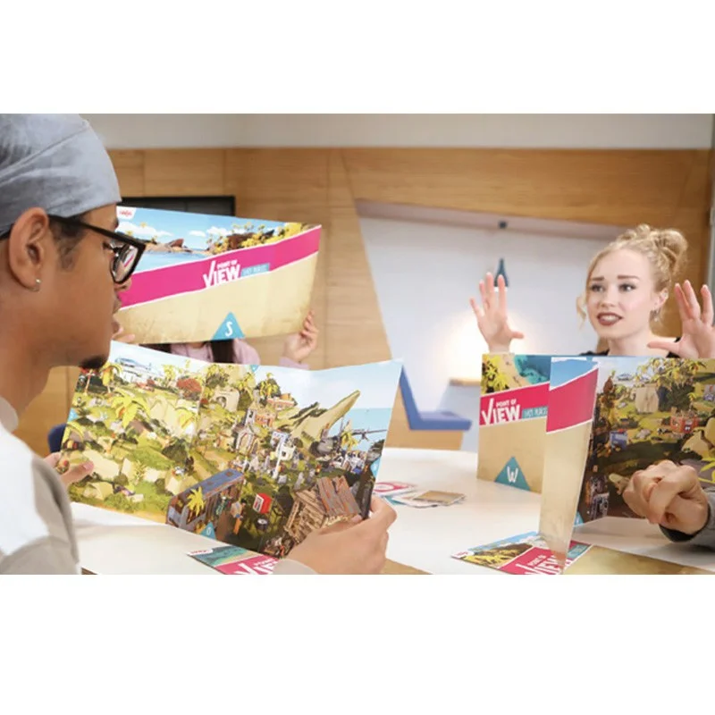 Cada persona observa una parte diferente del tablero con detalles importantes. Los necesitaréis para resolver juntos los enigmas del juego, por lo que la comunicación y la cooperación en equipo son la clave del éxito. En cuatro grandes mapas desplegables veréis una misma escena temática representada en un llamativo estilo 3D. Pero hay un detalle: cada dispondrá de un solo panel y cada uno de ellos muestra la escena desde un ángulo distinto, así que ninguno de vosotros tiene una visión completa de todo.
