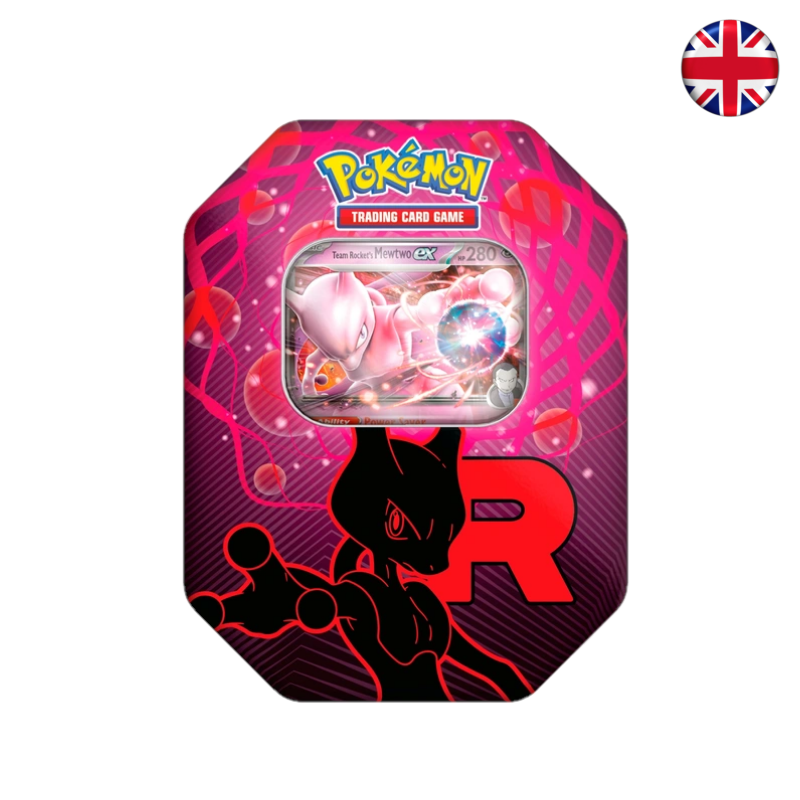 ¡Ejecuta tus ambiciosos planes con la ayuda de algunos de los Pokémon más poderosos del Team Rocket! Con esta lata, podrás escoger entre la mente estratégica de Mewtwo ex del Team Rocket, las potentes toxinas de Nidoking ex del Team Rocket o el soberbio poder de Persian ex del Team Rocket, que llegan en forma de cartas holográficas de promoción. También descubriras más cartas Pokémon y de Entrenador dentro del puñado de sobres de mejora que encontrarás en el interior.