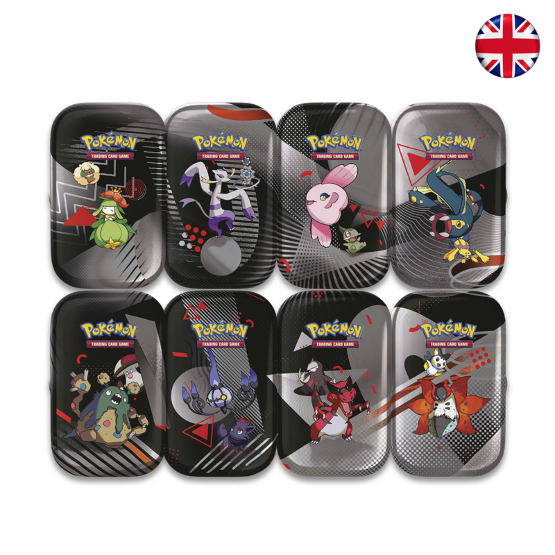 Añade más cartas a tu colección de Escarlata y Púrpura-Fulgor Negro y de Escarlata y Púrpura-Llama Blanca y consigue un divertido elemento coleccionable con cada una de las hermosas minilatas. Hay ocho diseños que coleccionar, y cada minilata está decorada con una ilustración que se puede combinar con el resto para formar una gran imagen.