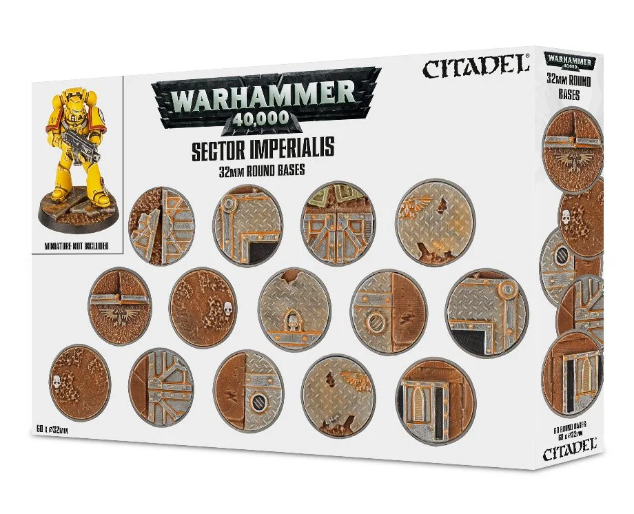 Diseñadas para conjuntarse con y complementar el tablero de juego Realm of Battle: Sector Imperialis, estas peanas de plástico altamente detalladas son ideales para la infantería de tu colección de Warhammer 40,000. Recibirás 60 peanas redondas de 32mm, moldeadas para ayudarte a dar temática a tus ejércitos del Sector Imperialis.