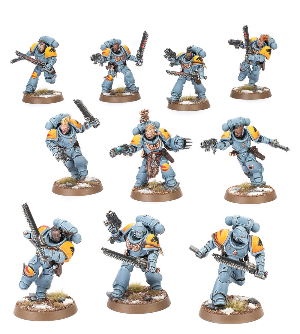 Agresivos, temerarios y decididos: los Blood Claws son los jóvenes guerreros de Fenris que se lanzan al combate sin dudar. Perfectos para cargas iniciales y presión continua.