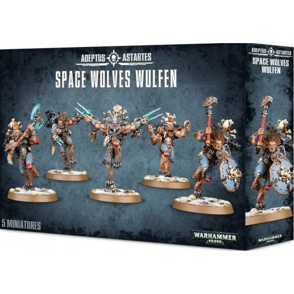 Tras haber sucumbido a la terrible maldición que encierra la Canis Helix, los Wulfen se han transformado en una grotesca caricatura del poder de los Space Wolves. Trotan al combate a una velocidad sobrenatural debido a la extraña maldición que altera su anatomía de manera radical, adaptándola para la caza a la perfección. Persiguen y atacan al enemigo en una furia constante que apenas pueden contener. Blanden potentes artefactos: garras, hachas y martillos; los lanzagranadas de asalto bajo el control de violentos espíritus máquina disparan explosivos precediendo a la carga, y quienes oyen su aullido de guerra sienten cómo se les desboca el corazón…