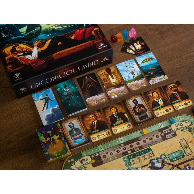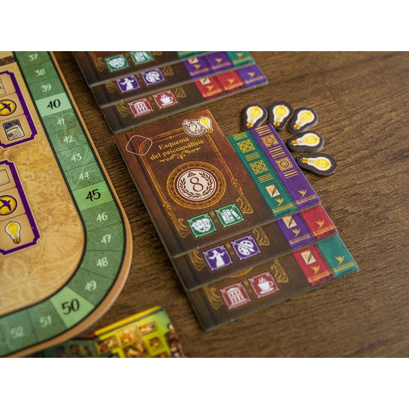 Como miembro de esta sociedad en Unconscious mind, un juego que combina la colocación de trabajadores, motores de construcción, la programación de acciones y la selección mediante rondeles. El objetivo es dominar técnicas terapéuticas, establecer una práctica y hacer crecer tu clientela. Al profundizar en los sueños de sus clientes (sus mentes inconscientes), puede ayudarlos a alcanzar la catarsis y recuperarse de sus traumas y capas de dolor. Como resultado, las personas a las que trate podrán vivir una vida más feliz y productiva. Además de eso, puede documentar sus descubrimientos publicando tratados (que luego pueden ser citados por otros investigadores) para mejorar su reputación académica.